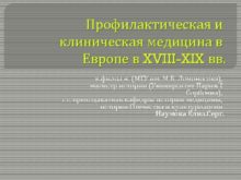 Профилактическая и клиническая медицина в Европе в XVIII-XIX
