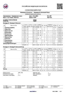 РОССИЙСКАЯ ФЕДЕРАЦИЯ БАСКЕТБОЛА СТАТИСТИЧЕСКИЙ ОТЧЕТ 29 48 3