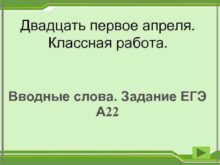 Двадцать первое апреля Классная работа Вводные слова Задание