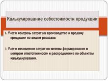 Калькулирование себестоимости продукции 1 Учет и контроль затрат