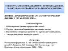 СУЩНОСТЬ БАНКОВ И БАЗ КАРТОГРАФИЧЕСКИХ ДАННЫХ ПРОЕКТИРОВАНИЕ БАЗ