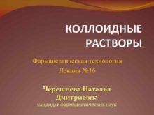 КОЛЛОИДНЫЕ РАСТВОРЫ Фармацевтическая технология Лекция 16 Черешнева