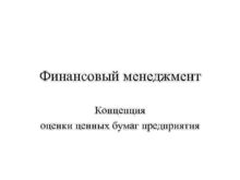 Финансовый менеджмент Концепция оценки ценных бумаг предприятия