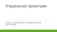 Управление проектами ТЕМА 4 УПРАВЛЕНИЕ ЧЕЛОВЕЧЕСКИМИ РЕСУРСАМИ