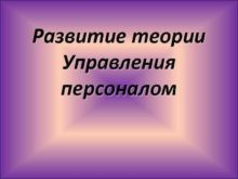 Развитие теории Управления персоналом План 1 Развитие