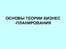 ОСНОВЫ ТЕОРИИ БИЗНЕС -ПЛАНИРОВАНИЯ Бизнес-план это