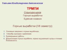 Татьяна Владимировна Антоновская ТРМПИ Структура курса Горные выработки