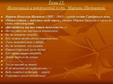Тема 13 Жизненный и творческий путь Марины Цветаевой