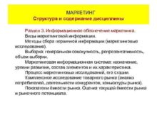 МАРКЕТИНГ Структура и содержание дисциплины Раздел 3 Информационное