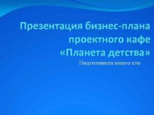 Презентация бизнес-плана проектного кафе Планета детства Подготовили много