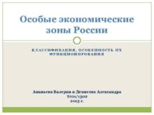 Особые экономические зоны России КЛАССИФИКАЦИЯ ОСОБЕННОСТЬ ИХ ФУНКЦИОНИРОВАНИЯ
