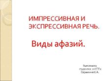 ИМПРЕССИВНАЯ И ЭКСПРЕССИВНАЯ РЕЧЬ Виды афазий Выполнила студентка