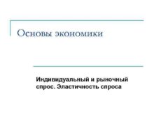 Основы экономики Индивидуальный и рыночный спрос Эластичность спроса
