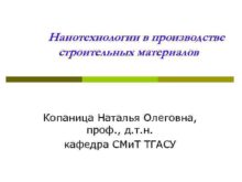 Нанотехнологии в производстве строительных материалов Копаница Наталья Олеговна