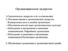 Организационное лидерство 1 Стратегическое лидерство и его составляющие