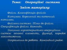 Тема Операційні системи Зміст матеріалу Файли Класифікація файлів
