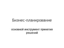 Бизнес-планирование основной инструмент принятия решений Бизнес-планирование