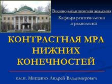 Военно-медицинская академия Кафедра рентгенологии и радиологии КОНТРАСТНАЯ МРА