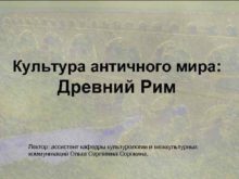 Культура античного мира Древний Рим Лектор ассистент кафедры