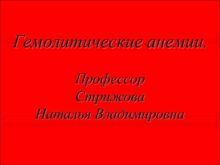 Гемолитические анемии Профессор Стрижова Наталья Владимировна Гемолитические