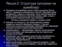 Лекція-2 Структура програми на асемблері l l l
