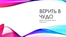 ВЕРИТЬ В ЧУДО Автор Степанова Алёна 6 Б