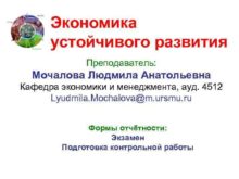 Экономика устойчивого развития Преподаватель Мочалова Людмила Анатольевна Кафедра