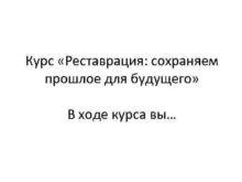 Курс Реставрация сохраняем прошлое для будущего В ходе