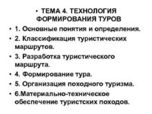 ТЕМА 4 ТЕХНОЛОГИЯ ФОРМИРОВАНИЯ ТУРОВ