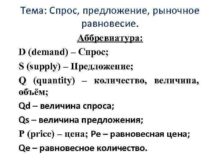 Тема Спрос предложение рыночное равновесие Аббревиатура D demand