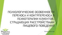 ПСИХОЛОГИЧЕСКИЕ ОСОБЕННОСТИ ПЕРЕНОСА И КОНТРПЕРЕНОСА В ПСИХОТЕРАПИИ КЛИЕНТОВ