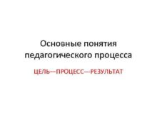 Основные понятия педагогического процесса ЦЕЛЬ ПРОЦЕСС—РЕЗУЛЬТАТ ПОДХОДЫ обучение