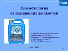 Химмотология охлаждающих жидкостей Выполнила Мухамедгалиева Динара студентка группы