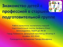 Знакомство детей с профессией в старшейподготовительной группе Работу