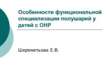 Особенности функциональной специализации полушарий у детей с ОНР