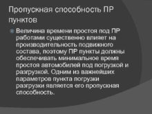 Пропускная способность ПР пунктов Величина времени простоя под