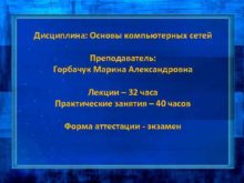Дисциплина Основы компьютерных сетей Преподаватель Горбачук Марина Александровна