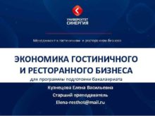 Менеджмент в гостиничном и ресторанном бизнесе ЭКОНОМИКА ГОСТИНИЧНОГО