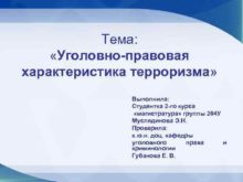 Тема Уголовно-правовая характеристика терроризма Выполнила Студентка 2 -го