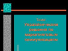 Тема Управленческие решения по маркетинговым коммуникациям Вопросы