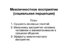 Межличностное восприятие социальная перцепция План 1 Сущность основных