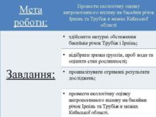 Мета роботи Провести екологічну оцінку антропогенного впливу на