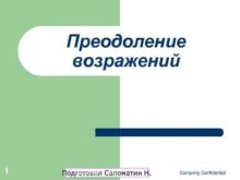 Преодоление возражений 1 November 16 2008 Подготовил Саломатин