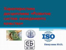 Характеристика дисциплины Развитие систем менеджмента качества Никулина Ю