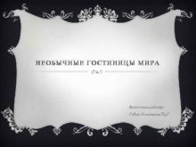 НЕОБЫЧНЫЕ ГОСТИНИЦЫ МИРА Выполнила работу Седых Анастасия Тв