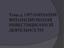 Тема 4 ОРГАНИЗАЦИЯ ФИНАНСИРОВАНИЯ ИНВЕСТИЦИОННОЙ ДЕЯТЕЛЬНОСТИ Строительный