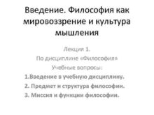 Введение Философия как мировоззрение и культура мышления Лекция