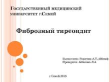 ГОСУДАРСТВЕННЫЙ МЕДИЦИНСКИЙ УНИВЕРСИТЕТ Г СЕМЕЙ Фиброзный тиреоидит Выполнила