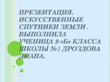 ПРЕЗЕНТАЦИЯ ИСКУССТВЕННЫЕ СПУТНИКИ ЗЕМЛИ ВЫПОЛНИЛА УЧЕНИЦА 9 Б