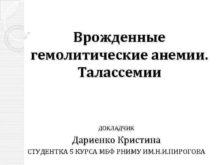 Врожденные гемолитические анемии Талассемии ДОКЛАДЧИК Дариенко Кристина СТУДЕНТКА